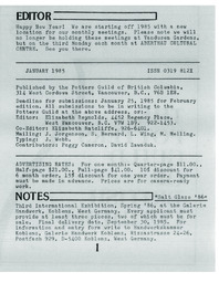 Summary Content type Content type Page Collection(s) Collection(s) 1985 Jan Newsletter - Potters Guild of British Columbia Identifiers Handle Handle Handle placeholder
