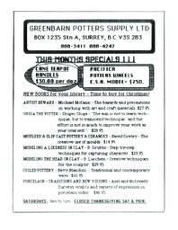 Summary Content type Content type Page Collection(s) Collection(s) 1985 Oct Newsletter - Potters Guild of British Columbia Identifiers Handle Handle Handle placeholder