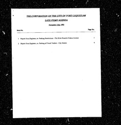 Summary Content type Content type Page Collection(s) Collection(s) 1993-11-15 - City of Port Coquitlam Council Meeting - Agenda Identifiers Handle Handle Handle placeholder