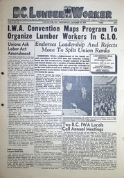 “The B.C. Lumber Worker, Vol. 9, No. 17, October 23, 1940, Page 1”. The B.C. Lumber Worker, Vol. 9, No. 17, October 23, 1940. Accessed November 9, 2025. https://bchdp.arcabc.ca/bc-lumber-worker-vol-9-no-17-october-23-1940/bc-lumber-worker-vol-9-no-17-october-23-1940-page-1.