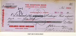 Summary Content type Content type Image Collection(s) Collection(s) Hong and Lee Chong Collection Genre Genre checks (bank checks) Origin Information Origin Information Date Created/Date Issued 1931-12-07 Persons and Affiliations Persons Creator (cre): Hong, Wong Mon Abstract/Description Description / Synopsis Description / Synopsis Box 40) Freight books from 1933 - 1937, a hotel register from 1928 - 1935, and a Lee Chong account book from 1929 - 1931. Publication/Container Information Publication Title Publication Title Hong And Lee Chong Collection Physical Description Extent Extent 60 Boxes, 9 Books (8 Linear metres), 9 Boxes Relationships Related Item Related Item Relationship Type host Title Hong And Lee Chong Collection Identifiers Local Identifier Local Identifier RG136 Handle Handle Handle placeholder Access and Rights Use and Reproduction Use and Reproduction Restricted Access Rights Statement Rights Statement COPYRIGHT NOT EVALUATED