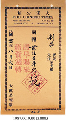 Summary Content type Content type Image Collection(s) Collection(s) Hong and Lee Chong Collection Genre Genre financial statements Origin Information Origin Information Date Created/Date Issued 1942 (year approximate) to 1944 (year approximate) Persons and Affiliations Persons Creator (cre): Hong, Wong Mon Abstract/Description Description / Synopsis Description / Synopsis Box 40) Freight books from 1933 - 1937, a hotel register from 1928 - 1935, and a Lee Chong account book from 1929 - 1931. Publication/Container Information Publication Title Publication Title Hong And Lee Chong Collection Physical Description Extent Extent 60 Boxes, 9 Books (8 Linear metres), 9 Boxes Physical Description Note Physical Description Note Box Date Relationships Related Item Related Item Relationship Type host Title Hong And Lee Chong Collection Identifiers Local Identifier Local Identifier RG136 Handle Handle Handle placeholder Access and Rights Use and Reproduction Use and Reproduction Restricted Access Rights Statement Rights Statement COPYRIGHT NOT EVALUATED