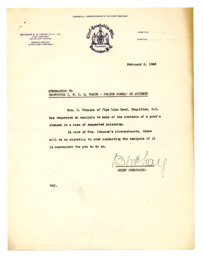 Summary Content type Content type Image Collection(s) Collection(s) Investigation notes - general, vol. 2 Resource Type Resource Type Text Origin Information Origin Information Date Created/Date Issued 1942-02-03 Persons and Affiliations Persons Creator (cre): Vance, John Abstract/Description Description / Synopsis Description / Synopsis Item is a letter to Vance from McKay authorizing his review of evidence in a suspected goat poisoning case. Language Language English Physical Description Extent Extent 1 memo Identifiers Handle Handle Handle placeholder Access and Rights Use and Reproduction Use and Reproduction Images provided for research and reference use only. Permission to publish, copy, or otherwise use these images must be obtained from the Vancouver Police Museum and Archives. Rights Statement Rights Statement IN COPYRIGHT - EDUCATIONAL USE PERMITTED Subjects and Classifications Subject Topic Subject Topic Crime Analyst Subject Name Person Subject Name Person Vance, John Geographic Subject Geographic Subject Vancouver (B.C.)