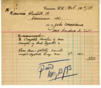 Item is a letter from Vance with analysis results on the moisture levels in dried vegetable samples, along with an invoice for services |