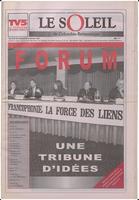 Summary Content type Content type Publication Issue Collection(s) Collection(s) Le Soleil de Colombie-Britannique (May 7, 1993 - April 24, 1998) Resource Type Resource Type Text Genre Genre newspapers Origin Information Origin Information Date Created/Date Issued 1997-11-28 Publisher André Piolat, Jacques Baillaut Identifiers Local Identifier Local Identifier Le Sol971128 Handle Handle Handle placeholder Access and Rights Use and Reproduction Use and Reproduction Jacques Baillaut Subjects and Classifications Subject Topic Subject Topic French Canadians - British Columbia - Newspapers Francophones - British Columbia - Newspapers French - British Columbia - Newspapers
