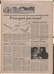 “Le Soleil de Colombie, March 11, 1977, Page 1”. Le Soleil de Colombie, March 11, 1977. Handle placeholder.