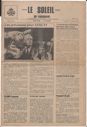 “Le Soleil de Vancouver, February 20, 1970, Page 1”. Le Soleil de Vancouver, February 20, 1970. Handle placeholder.