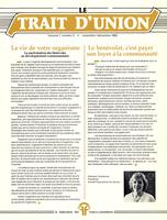 Summary Content type Content type Publication Issue Collection(s) Collection(s) Le Trait d’Union Resource Type Resource Type Text Genre Genre newspaper Origin Information Origin Information Date Created/Date Issued 1982-11-01 Publisher Fédération des franco-colombiens, Vancouver Abstract/Description Language Language French Physical Description Extent Extent Vol. 1 No. 3 nov.-déc. ; pp. 4 Identifiers Handle Handle Handle placeholder