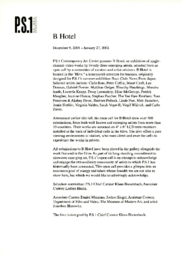 Summary Content type Content type Digital Document Collection(s) Collection(s) Léa Donnan, Rebecca Belmore, and Hester Reeve, 'Chiasma' Resource Type Resource Type Text Genre Genre promotional materials Origin Information Origin Information Place New York, NY Date Created/Date Issued 2001 Publisher MoMA PS1 Persons and Affiliations Organizations Creator (cre): MoMA PS1 Abstract/Description Description / Synopsis Description / Synopsis Information on B Hotel at MoMA PS1, including work by Léa Donnan. Collected material from Chiasma by Léa Donnan, Rebecca Belmore, and Hester Reeve. Physical Description Extent Extent 1 page Identifiers Local Identifier Local Identifier 2003.1120 CHI Handle Handle Handle placeholder Access and Rights Use and Reproduction Use and Reproduction In Copyright. For more information, researcher inquiries, or takedown requests please contact grunt's archives manager dan@grunt.ca Rights Statement Rights Statement IN COPYRIGHT Subjects and Classifications Subject Topic Subject Topic Performance Art Video Works Technology Subject Name Person Subject Name Person Donnan, Léa