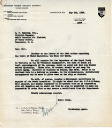Summary Content type Content type Digital Document Collection(s) Collection(s) Letter to Swift Canadian Co. from CPR Purchasing Agent Origin Information Origin Information Date Created/Date Issued 1939-05-04 Identifiers Handle Handle Handle placeholder