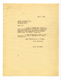 Summary Content type Content type Digital Document Collection(s) Collection(s) Letter to Vance, from Thos. Heatley, Chief Constable; Letter to John Cameron Esq., Chief Constable, from Thos. Heatley; Letter to Thomas Heatley, from John Cermon Esq., Chief Constable Origin Information Origin Information Date Created/Date Issued 1933-05-09 Identifiers Handle Handle Handle placeholder