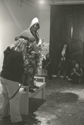 Summary Content type Content type Image Collection(s) Collection(s) Lisa Deanne Smith, 'Flower Girl' Resource Type Resource Type Still image Genre Genre performance art Origin Information Origin Information Date Created/Date Issued 2001-10-19 Publisher grunt gallery Persons and Affiliations Persons Performer (prf): Smith, Lisa Deanne Photographer (pht): Addison, Merle Abstract/Description Description / Synopsis Description / Synopsis Lisa Deanne Smith, covered in flowers, stands on a white bench and interacts with an audience member. Still from Flower Girl by Lisa Deanne Smith. Physical Description Extent Extent 1 35mm negative : black and white Identifiers Local Identifier Local Identifier 2001.1019 BLI Handle Handle Handle placeholder Access and Rights Use and Reproduction Use and Reproduction Copyright grunt gallery 2020. For more information, researcher inquiries, or takedown requests please contact grunt's archives manager dan@grunt.ca Rights Statement Rights Statement IN COPYRIGHT Subjects and Classifications Subject Topic Subject Topic Desire Feminism Flowers Embodied Knowledge Interactive Works Geographic Subject Geographic Subject Gallery Gachet, Vancouver, BC
