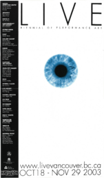 Summary Content type Content type Digital Document Collection(s) Collection(s) LIVE Biennial of Performance Art 2003 Promotion and Publicity Resource Type Resource Type Text Genre Genre promotional materials Origin Information Origin Information Place Vancouver, Canada Date Created/Date Issued 2003-10-18 Publisher grunt gallery Persons and Affiliations Organizations Creator (cre): grunt gallery Abstract/Description Description / Synopsis Description / Synopsis Programming poster for LIVE Biennial of Performance Art, October 18 – November 29, 2003. Collected Material for LIVE Biennial of Performance Art 2003. Physical Description Extent Extent 1 page Identifiers Local Identifier Local Identifier 2003.1018 LIV Handle Handle Handle placeholder Access and Rights Use and Reproduction Use and Reproduction Copyright grunt gallery 2020. For more information, researcher inquiries, or takedown requests please contact grunt's archives manager dan@grunt.ca Rights Statement Rights Statement IN COPYRIGHT Subjects and Classifications Subject Topic Subject Topic LIVE Biennial of Performance Art Performance Art Performance Artists Events Geographic Subject Geographic Subject Vancouver, BC
