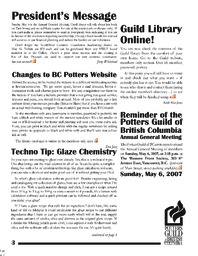 Summary Content type Content type Page Collection(s) Collection(s) Newsletters - Potters Guild of British Columbia 2007 May 1 Identifiers Handle Handle Handle placeholder