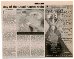 Summary Content type Content type Digital Document Collection(s) Collection(s) Astrid Hadad y Los Tarzanes Resource Type Resource Type Text Genre Genre advertisements Origin Information Origin Information Place Vancouver, BC Date Created/Date Issued 2005-10-06 Publisher The Georgia Straight Persons and Affiliations Organizations Creator (cre): The Georgia Straight Abstract/Description Description / Synopsis Description / Synopsis Advertisement for Astrid Hadad's performance at The Chan Centre in The Georgia Straight. Collected material for Astrid Hadad y Los Tarzanes. Physical Description Extent Extent 1 page Identifiers Local Identifier Local Identifier 2005.1022 CHA Handle Handle Handle placeholder Access and Rights Use and Reproduction Use and Reproduction In Copyright. For more information, researcher inquiries, or takedown requests please contact grunt's archives manager dan@grunt.ca Rights Statement Rights Statement IN COPYRIGHT Subjects and Classifications Subject Topic Subject Topic Performance Art Live Music Mexican Women Multimedia Works Cabaret Subject Name Person Subject Name Person Hadad, Astrid , Los Tarzanes