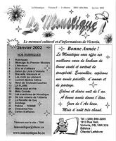 Summary Content type Content type Publication Issue Collection(s) Collection(s) Le Moustique…pacifique, Victoria Resource Type Resource Type Text Genre Genre newspaper Origin Information Origin Information Date Created/Date Issued 2002-01-01 Publisher Société francophone de Victoria Abstract/Description Language Language French Physical Description Extent Extent Vol. 5 No. 1 janv ; pp. 28 Identifiers Handle Handle Handle placeholder