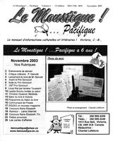 Summary Content type Content type Publication Issue Collection(s) Collection(s) Le Moustique…pacifique, Victoria Resource Type Resource Type Text Genre Genre newspaper Origin Information Origin Information Date Created/Date Issued 2003-11-01 Publisher Société francophone de Victoria Abstract/Description Language Language French Physical Description Extent Extent Vol. 6 No. 11 nov ; pp. 28 Identifiers Handle Handle Handle placeholder