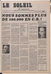 “Le Soleil de Vancouver, October 26, 1973, Page 1”. Le Soleil de Vancouver, October 26, 1973. Handle placeholder.