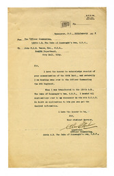 Summary Content type Content type Image Collection(s) Collection(s) Correspondence [professional and private], accolades and associations, vol. 2 Resource Type Resource Type Text Origin Information Origin Information Date Created/Date Issued 1916-01-26 Persons and Affiliations Persons Creator (cre): Vance, John Abstract/Description Description / Synopsis Description / Synopsis Item is a typed letter from The Officer Commanding, 158th O.B. The Duke of Connaught's Own, C.E.F. to Vance. Language Language English Physical Description Extent Extent 1 letter (correspondence) Identifiers Handle Handle Handle placeholder Access and Rights Use and Reproduction Use and Reproduction Images provided for research and reference use only. Permission to publish, copy, or otherwise use these images must be obtained from the Vancouver Police Museum and Archives. http://rightsstatements.org/page/InC-EDU/1.0/ Subjects and Classifications Subject Topic Subject Topic Analyst Health Subject Name Person Subject Name Person Vance, John Geographic Subject Geographic Subject Vancouver (B.C.)
