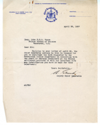 Summary Content type Content type Digital Document Collection(s) Collection(s) Letter to W.W. Foster, Chief Constable from Vance Origin Information Origin Information Date Created/Date Issued 1937-04-30 Identifiers Handle Handle Handle placeholder