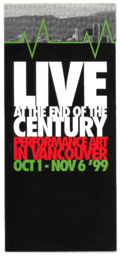 Summary Content type Content type Digital Document Collection(s) Collection(s) LIVE at the End of the Century Promotion and Publicity Resource Type Resource Type Text Genre Genre promotional materials Origin Information Origin Information Place Vancouver, Canada Date Created/Date Issued 1999-10-01 Publisher grunt gallery Persons and Affiliations Organizations Creator (cre): grunt gallery Abstract/Description Description / Synopsis Description / Synopsis Programming brochure for LIVE at the End of the Century, October 1 – November 6, 1999. Includes event listings by date and venue, funding acknowledgements, and an introduction by Glenn Alteen. Collected Material for LIVE at the End of the Century. Physical Description Extent Extent 3 pages Identifiers Local Identifier Local Identifier 1999.1001 LIV Handle Handle Handle placeholder Access and Rights Use and Reproduction Use and Reproduction Copyright grunt gallery 2020. For more information, researcher inquiries, or takedown requests please contact grunt's archives manager dan@grunt.ca Rights Statement Rights Statement IN COPYRIGHT Subjects and Classifications Subject Topic Subject Topic LIVE Biennial of Performance Art Performance Art Performance Artists Events Geographic Subject Geographic Subject Vancouver, BC