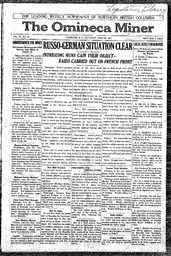 Summary Content type Content type Page Collection(s) Collection(s) Omineca Miner, June, 23, 1917 Identifiers Handle Handle Handle placeholder