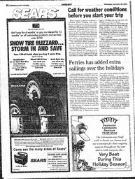 Summary Content type Content type Page Collection(s) Collection(s) The Peninsula News Review Wed, December 20, 2000 Resource Type Resource Type Text Genre Genre newspaper Origin Information Origin Information Place Saanich Peninsula And Gulf Islands, B.C. Date Created/Date Issued 2000-12-20 Publisher Black Press Media Ltd Abstract/Description Language Language English Publication/Container Information Publication Title Publication Title The Peninsula News Review Wed, December 20, 2000 Physical Description Extent Extent 44 First page number First page number 22 Last page number Last page number 22 Relationships Related Item Related Item Relationship Type host Title The Peninsula News Review Wed, December 20, 2000 Identifiers Local Identifier Local Identifier 2021.44.3787 Handle Handle Handle placeholder Access and Rights Rights Statement Rights Statement NO COPYRIGHT - NON-COMMERCIAL USE ONLY Subjects and Classifications Subject Topic Subject Topic newspapers