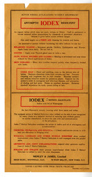 Summary Content type Content type Image Collection(s) Collection(s) [Binder] Vance chemical and food formulas and notes Resource Type Resource Type Text Origin Information Origin Information Date Created/Date Issued Unknown year in the century of the 1900s Persons and Affiliations Persons Creator (cre): Vance, John Abstract/Description Description / Synopsis Description / Synopsis Item is a product pamphlet for "Iodex: Antiseptic Resolvent". Language Language English Physical Description Extent Extent 1 pamphlet Identifiers Handle Handle Handle placeholder Access and Rights Use and Reproduction Use and Reproduction Images provided for research and reference use only. Permission to publish, copy, or otherwise use these images must be obtained from the Vancouver Police Museum and Archives. Rights Statement Rights Statement IN COPYRIGHT - EDUCATIONAL USE PERMITTED Subjects and Classifications Subject Topic Subject Topic Analyst Food Chemistry Subject Name Person Subject Name Person Vance, John Geographic Subject Geographic Subject Vancouver (B.C.)
