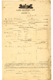 Summary Content type Content type Digital Document Collection(s) Collection(s) Vance filing - Vance [associations and employment correspondence], vol. 4 Resource Type Resource Type Text Origin Information Origin Information Date Created/Date Issued 1912-06-18 Persons and Affiliations Persons Creator (cre): Vance, John Abstract/Description Description / Synopsis Description / Synopsis Item is a Land Registry Act (Form A) completed by Vance as the Authorizing Agent for Jeanne Newton Vance for property located in New Westminster, BC. Language Language English Physical Description Extent Extent 1 form (document) Identifiers Handle Handle Handle placeholder Access and Rights Use and Reproduction Use and Reproduction Images provided for research and reference use only. Permission to publish, copy, or otherwise use these images must be obtained from the Vancouver Police Museum and Archives. Rights Statement Rights Statement IN COPYRIGHT - EDUCATIONAL USE PERMITTED Subjects and Classifications Subject Topic Subject Topic Health Analyst Subject Name Person Subject Name Person Vance, John Geographic Subject Geographic Subject Vancouver (B.C.)