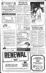 Summary Content type Content type Page Collection(s) Collection(s) The Review Wed, February 25, 1987 Resource Type Resource Type Text Genre Genre newspaper Origin Information Origin Information Place Saanich Peninsula And Gulf Islands, B.C. Date Created/Date Issued 1987-02-25 Publisher Black Press Media Ltd Abstract/Description Language Language English Publication/Container Information Publication Title Publication Title The Review Wed, February 25, 1987 Physical Description Extent Extent 26 First page number First page number 18 Last page number Last page number 18 Relationships Related Item Related Item Relationship Type host Title The Review Wed, February 25, 1987 Identifiers Local Identifier Local Identifier 2021.44.3550 Handle Handle Handle placeholder Access and Rights Rights Statement Rights Statement NO COPYRIGHT - NON-COMMERCIAL USE ONLY Subjects and Classifications Subject Topic Subject Topic newspapers