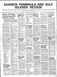 Summary Content type Content type Page Collection(s) Collection(s) Saanich Peninsula And Gulf Islands Review Wed, May 29, 1940 Resource Type Resource Type Text Genre Genre newspaper Origin Information Origin Information Place Saanich Peninsula And Gulf Islands, B.C. Date Created/Date Issued 1940-05-29 Publisher Black Press Media Ltd Abstract/Description Language Language English Publication/Container Information Publication Title Publication Title Saanich Peninsula And Gulf Islands Review Wed, May 29, 1940 Physical Description Extent Extent 4 First page number First page number 1 Last page number Last page number 1 Relationships Related Item Related Item Relationship Type host Title Saanich Peninsula And Gulf Islands Review Wed, May 29, 1940 Identifiers Local Identifier Local Identifier 2021.44.2328 Handle Handle Handle placeholder Access and Rights Rights Statement Rights Statement NO COPYRIGHT - NON-COMMERCIAL USE ONLY Subjects and Classifications Subject Topic Subject Topic newspapers