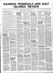 Summary Content type Content type Page Collection(s) Collection(s) Saanich Peninsula And Gulf Islands Review Wed, October 2, 1940 Resource Type Resource Type Text Genre Genre newspaper Origin Information Origin Information Place Saanich Peninsula And Gulf Islands, B.C. Date Created/Date Issued 1940-10-02 Publisher Black Press Media Ltd Abstract/Description Language Language English Publication/Container Information Publication Title Publication Title Saanich Peninsula And Gulf Islands Review Wed, October 2, 1940 Physical Description Extent Extent 4 First page number First page number 1 Last page number Last page number 1 Relationships Related Item Related Item Relationship Type host Title Saanich Peninsula And Gulf Islands Review Wed, October 2, 1940 Identifiers Local Identifier Local Identifier 2021.44.2345 Handle Handle Handle placeholder Access and Rights Rights Statement Rights Statement NO COPYRIGHT - NON-COMMERCIAL USE ONLY Subjects and Classifications Subject Topic Subject Topic newspapers