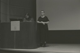 Summary Content type Content type Image Collection(s) Collection(s) Jeanne Randolph, 'Syntax errors: Acting out, Play-Doh* and Doubt: a personalized history of performative lecturing' Resource Type Resource Type Still image Genre Genre performance art Origin Information Origin Information Date Created/Date Issued 2001-10-23 Publisher grunt gallery Persons and Affiliations Persons Performer (prf): Randolph, Jeanne Photographer (pht): Addison, Merle Abstract/Description Description / Synopsis Description / Synopsis Jeanne Randolph leans against a podium, while Lorna Brown sets up the computer. Still from Syntax errors: Acting out, Play-Doh* and Doubt by Jeanne Randolph. Physical Description Extent Extent 1 35mm negative : black and white Physical Form Physical Form nonprojected graphic Identifiers Local Identifier Local Identifier 2001.1023 SYN Handle Handle Handle placeholder Access and Rights Use and Reproduction Use and Reproduction Copyright grunt gallery 2020. For more information, researcher inquiries, or takedown requests please contact grunt's archives manager dan@grunt.ca Rights Statement Rights Statement IN COPYRIGHT Subjects and Classifications Subject Topic Subject Topic Syntax errors Lectures Technology Language Translation Geographic Subject Geographic Subject SFU Harbour Centre Fletcher Challenge Theatre, Vancouver, BC