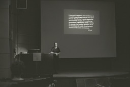 Summary Content type Content type Image Collection(s) Collection(s) Jeanne Randolph, 'Syntax errors: Acting out, Play-Doh* and Doubt: a personalized history of performative lecturing' Resource Type Resource Type Still image Genre Genre performance art Origin Information Origin Information Date Created/Date Issued 2001-10-23 Publisher grunt gallery Persons and Affiliations Persons Performer (prf): Randolph, Jeanne Photographer (pht): Addison, Merle Abstract/Description Description / Synopsis Description / Synopsis Jeanne Randolph leans against a podium, in front of a projection of a Sigmund Freud. Still from Syntax errors: Acting out, Play-Doh* and Doubt by Jeanne Randolph. Physical Description Extent Extent 1 35mm negative : black and white Physical Form Physical Form nonprojected graphic Identifiers Local Identifier Local Identifier 2001.1023 SYN Handle Handle Handle placeholder Access and Rights Use and Reproduction Use and Reproduction Copyright grunt gallery 2020. For more information, researcher inquiries, or takedown requests please contact grunt's archives manager dan@grunt.ca Rights Statement Rights Statement IN COPYRIGHT Subjects and Classifications Subject Topic Subject Topic Syntax errors Lectures Technology Language Translation Geographic Subject Geographic Subject SFU Harbour Centre Fletcher Challenge Theatre, Vancouver, BC