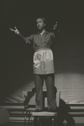 Summary Content type Content type Image Collection(s) Collection(s) Louise Moyes, 'Taking in Strangers' Resource Type Resource Type Still image Genre Genre performance art Origin Information Origin Information Date Created/Date Issued 2001-11-28 Publisher grunt gallery Persons and Affiliations Persons Performer (prf): Moyes, Louise Photographer (pht): Addison, Merle Abstract/Description Description / Synopsis Description / Synopsis Louise wears an apron and stands on a chair with arms extended. Still from Taking in Strangers by Louise Moyes. Physical Description Extent Extent 1 35mm negative : black and white Identifiers Local Identifier Local Identifier 2001.1128 TAK Handle Handle Handle placeholder Access and Rights Use and Reproduction Use and Reproduction Copyright grunt gallery 2020. For more information, researcher inquiries, or takedown requests please contact grunt's archives manager dan@grunt.ca Rights Statement Rights Statement IN COPYRIGHT Subjects and Classifications Subject Topic Subject Topic Newfoundland Quebec Conversations Humour Language Geographic Subject Geographic Subject grunt gallery, Vancouver, BC