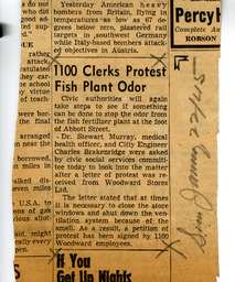 Summary Content type Content type Image Collection(s) Collection(s) Foreshore Report and Waterfront Report Resource Type Resource Type Text Origin Information Origin Information Date Created/Date Issued 1945-01-22 Persons and Affiliations Persons Creator (cre): Vance, John Abstract/Description Description / Synopsis Description / Synopsis Item is a newspaper article "1100 Clerks Protest Fish Plant Odor". Language Language English Physical Description Extent Extent 1 newspaper article Identifiers Handle Handle Handle placeholder Access and Rights Use and Reproduction Use and Reproduction Images provided for research and reference use only. Permission to publish, copy, or otherwise use these images must be obtained from the Vancouver Police Museum and Archives. Rights Statement Rights Statement IN COPYRIGHT - EDUCATIONAL USE PERMITTED Subjects and Classifications Subject Topic Subject Topic Fish Plant Odor Subject Name Person Subject Name Person Vance, John Geographic Subject Geographic Subject Vancouver (B.C.)