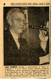 Summary Content type Content type Image Collection(s) Collection(s) Vance filing - Vance [associations and employment correspondence], vol. 6 Resource Type Resource Type Still image Origin Information Origin Information Date Created/Date Issued 1949-04-07 Persons and Affiliations Persons Creator (cre): Vance, John Abstract/Description Description / Synopsis Description / Synopsis Newspaper clipping "Last Glimpse through a spectroscope" Language Language English Physical Description Extent Extent 1 newspaper clipping Identifiers Handle Handle Handle placeholder Access and Rights Use and Reproduction Use and Reproduction Images provided for research and reference use only. Permission to publish, copy, or otherwise use these images must be obtained from the Vancouver Police Museum and Archives. Rights Statement Rights Statement IN COPYRIGHT - EDUCATIONAL USE PERMITTED Subjects and Classifications Subject Topic Subject Topic Crime Analyst Subject Name Person Subject Name Person Vance, John Geographic Subject Geographic Subject Vancouver (B.C.)