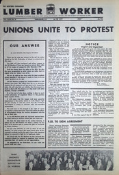 “The Western Canadian Lumber Worker, Vol. XXXII, No. 21, 1st Issue Nov. 1965 , Page 1”. The Western Canadian Lumber Worker, Vol. XXXII, No. 21, 1st Issue Nov. 1965. Handle placeholder.
