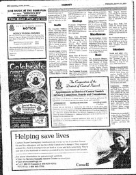 Summary Content type Content type Page Collection(s) Collection(s) The Peninsula News Review Wed, January 24, 2001 Resource Type Resource Type Text Genre Genre newspaper Origin Information Origin Information Place Saanich Peninsula And Gulf Islands, B.C. Date Created/Date Issued 2001-01-24 Publisher Black Press Media Ltd Abstract/Description Language Language English Publication/Container Information Publication Title Publication Title The Peninsula News Review Wed, January 24, 2001 Physical Description Extent Extent 36 First page number First page number 30 Last page number Last page number 30 Relationships Related Item Related Item Relationship Type host Title The Peninsula News Review Wed, January 24, 2001 Identifiers Local Identifier Local Identifier 2021.44.3789 Handle Handle Handle placeholder Access and Rights Rights Statement Rights Statement NO COPYRIGHT - NON-COMMERCIAL USE ONLY Subjects and Classifications Subject Topic Subject Topic newspapers
