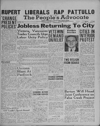“People’s Advocate August 19, 1938, Page 1”. People’s Advocate August 19, 1938. Accessed October 26, 2025. https://bchdp.arcabc.ca/peoples-advocate-august-19-1938/peoples-advocate-august-19-1938-page-1.