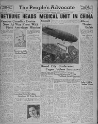 “People’s Advocate, February 25, 1938, Page 1”. People’s Advocate, February 25, 1938. Accessed October 24, 2025. https://bchdp.arcabc.ca/peoples-advocate-february-25-1938/peoples-advocate-february-25-1938-page-1.