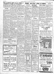 Summary Content type Content type Page Collection(s) Collection(s) Saanich Peninsula And Gulf Islands Review Wed, August 31, 1955 Resource Type Resource Type Text Genre Genre newspaper Origin Information Origin Information Place Saanich Peninsula And Gulf Islands, B.C. Date Created/Date Issued 1955-08-31 Publisher Black Press Media Ltd Abstract/Description Language Language English Publication/Container Information Publication Title Publication Title Saanich Peninsula And Gulf Islands Review Wed, August 31, 1955 Physical Description Extent Extent 12 First page number First page number 10 Last page number Last page number 10 Relationships Related Item Related Item Relationship Type host Title Saanich Peninsula And Gulf Islands Review Wed, August 31, 1955 Identifiers Local Identifier Local Identifier 2021.44.990 Handle Handle Handle placeholder Access and Rights Rights Statement Rights Statement NO COPYRIGHT - NON-COMMERCIAL USE ONLY Subjects and Classifications Subject Topic Subject Topic newspapers