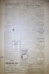 Summary Content type Content type Page Collection(s) Collection(s) The Semiahmoo Sun and White Rock Weekly, September 01, 1949 Genre Genre newspaper Origin Information Origin Information Place Whiterock, B.C. Date Created/Date Issued 1949-09-01 Publisher L.A. Starck Publication/Container Information Publication Title Publication Title The Semiahmoo Sun and White Rock Weekly, September 01, 1949 Physical Description First page number First page number 11 Last page number Last page number 11 Relationships Related Item Related Item Relationship Type host Title The Semiahmoo Sun and White Rock Weekly, September 01, 1949 Identifiers Handle Handle Handle placeholder Access and Rights Rights Statement Rights Statement NO COPYRIGHT - NON-COMMERCIAL USE ONLY Subjects and Classifications Subject Topic Subject Topic newspapers