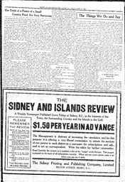 Summary Content type Content type Page Collection(s) Collection(s) Sidney And Islands Review Fri, April 11, 1913 Resource Type Resource Type Text Genre Genre newspaper Origin Information Origin Information Date Created/Date Issued 1913-04-11 Publisher Black Press Media Ltd Abstract/Description Language Language English Publication/Container Information Publication Title Publication Title Sidney And Islands Review Fri, April 11, 1913 Physical Description Extent Extent 8 First page number First page number 7 Last page number Last page number 7 Relationships Related Item Related Item Relationship Type host Title Sidney And Islands Review Fri, April 11, 1913 Identifiers Local Identifier Local Identifier 2021.44.14 Handle Handle Handle placeholder Access and Rights Rights Statement Rights Statement NO COPYRIGHT - NON-COMMERCIAL USE ONLY Subjects and Classifications Subject Topic Subject Topic newspapers