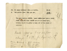 Item is a memo stating "The jars contain POISON. Each bottle must have a label (red) with the name POISON upon it in large type, warning should be given to keep out of the reach of children." Item includes handwritten notes.
