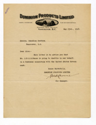 Summary Content type Content type Image Collection(s) Collection(s) Vance filing - Vance [associations and employment correspondence], vol. 1 Resource Type Resource Type Text Origin Information Origin Information Date Created/Date Issued 1918-05-23 Persons and Affiliations Persons Creator (cre): Vance, John Abstract/Description Description / Synopsis Description / Synopsis Item is a letter on behalf of Vance who is travelling to the USA for meetings on behalf of the company. Language Language English Physical Description Extent Extent 1 letter (correspondence) Identifiers Handle Handle Handle placeholder Access and Rights Use and Reproduction Use and Reproduction Images provided for research and reference use only. Permission to publish, copy, or otherwise use these images must be obtained from the Vancouver Police Museum and Archives. Rights Statement Rights Statement IN COPYRIGHT - EDUCATIONAL USE PERMITTED Subjects and Classifications Subject Topic Subject Topic Analyst Subject Name Person Subject Name Person Vance, John Geographic Subject Geographic Subject Vancouver (B.C.)