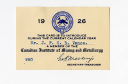 Summary Content type Content type Image Collection(s) Collection(s) Vance filing - Vance [associations and employment correspondence], vol. 1 Resource Type Resource Type Text Origin Information Origin Information Date Created/Date Issued 1952-01-01 Persons and Affiliations Persons Creator (cre): Vance, John Abstract/Description Description / Synopsis Description / Synopsis Item is Vance's membership card for 1952. Language Language English Physical Description Extent Extent 1 certificate (document) Identifiers Handle Handle Handle placeholder Access and Rights Use and Reproduction Use and Reproduction Images provided for research and reference use only. Permission to publish, copy, or otherwise use these images must be obtained from the Vancouver Police Museum and Archives. Rights Statement Rights Statement IN COPYRIGHT - EDUCATIONAL USE PERMITTED Subjects and Classifications Subject Topic Subject Topic Membership Associations Subject Name Person Subject Name Person Vance, John Geographic Subject Geographic Subject Vancouver (B.C.)