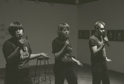 Summary Content type Content type Image Collection(s) Collection(s) Vanessa Kwan, Josh Neelands, and Kara Uzelman, 'The Comedians' Resource Type Resource Type Still image Genre Genre performance art Origin Information Origin Information Date Created/Date Issued 2003-11-04 Publisher grunt gallery Persons and Affiliations Persons Performer (prf): Kwan, Vanessa Performer (prf): Neelands, Josh Performer (prf): Uzelman, Kara Photographer (pht): Addison, Merle Abstract/Description Description / Synopsis Description / Synopsis Vanessa, Kara, and Josh, in matching outfits, stand side-by-side, speaking into microphones. Still from The Comedians by Vanessa Kwan, Josh Neelands, and Kara Uzelman. Physical Description Extent Extent 1 35mm negative : black and white Identifiers Local Identifier Local Identifier 2003.1104 COM Handle Handle Handle placeholder Access and Rights Use and Reproduction Use and Reproduction Copyright grunt gallery 2020. For more information, researcher inquiries, or takedown requests please contact grunt's archives manager dan@grunt.ca Rights Statement Rights Statement IN COPYRIGHT Subjects and Classifications Subject Topic Subject Topic Comedy Monologue Durational Performance Geographic Subject Geographic Subject Helen Pitt Gallery, Vancouver, BC