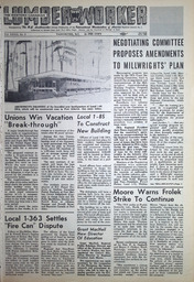 “The Western Canadian Lumber Worker, Vol. XXXII, No. 8, 2nd Issue Apr. 1965 , Page 1”. The Western Canadian Lumber Worker, Vol. XXXII, No. 8, 2nd Issue Apr. 1965. Handle placeholder.