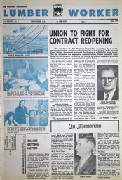 “The Western Canadian Lumber Worker, Vol. XXXVII, No. 7, May 1969 , Page 1”. The Western Canadian Lumber Worker, Vol. XXXVII, No. 7, May 1969. Handle placeholder.